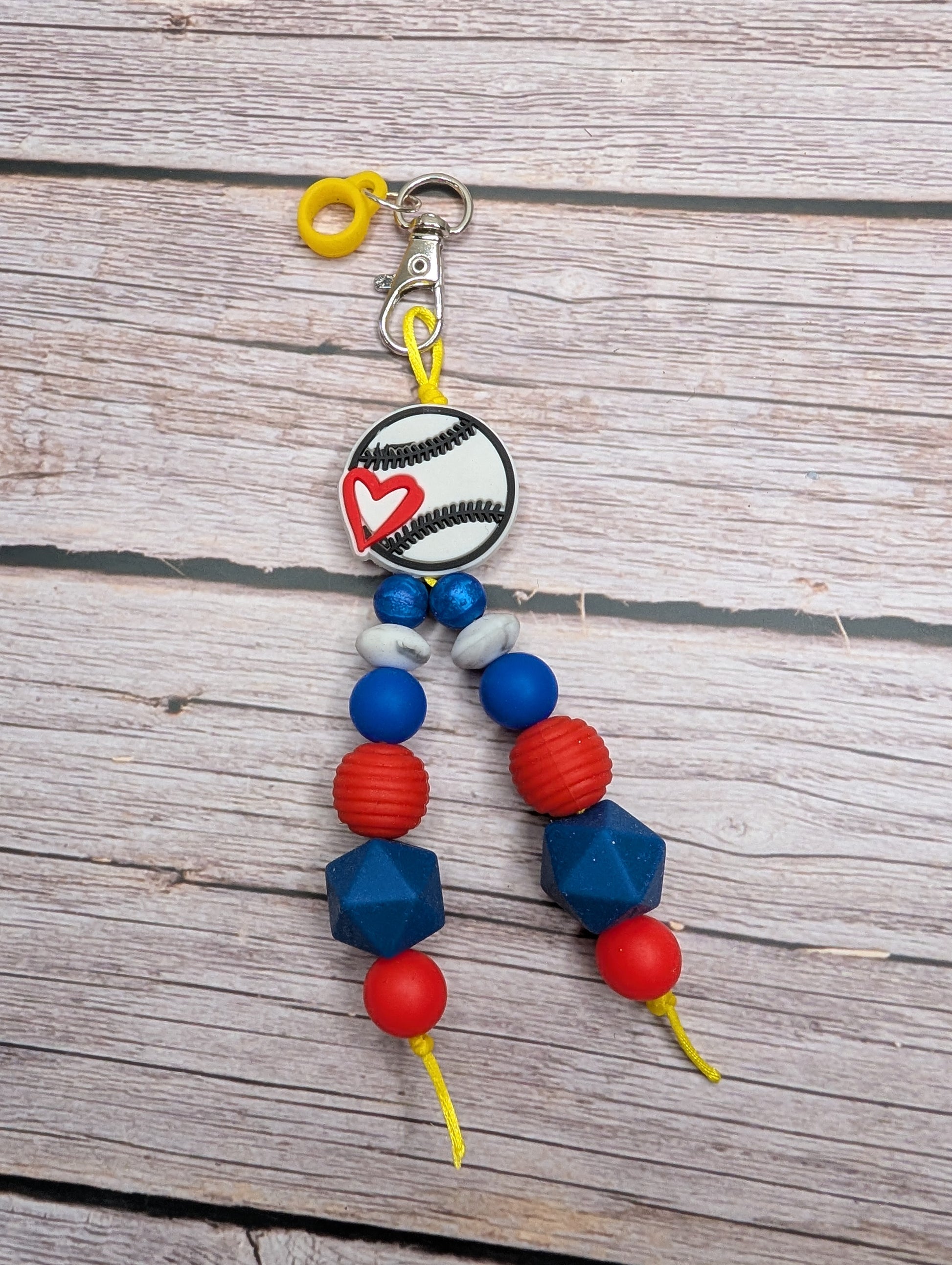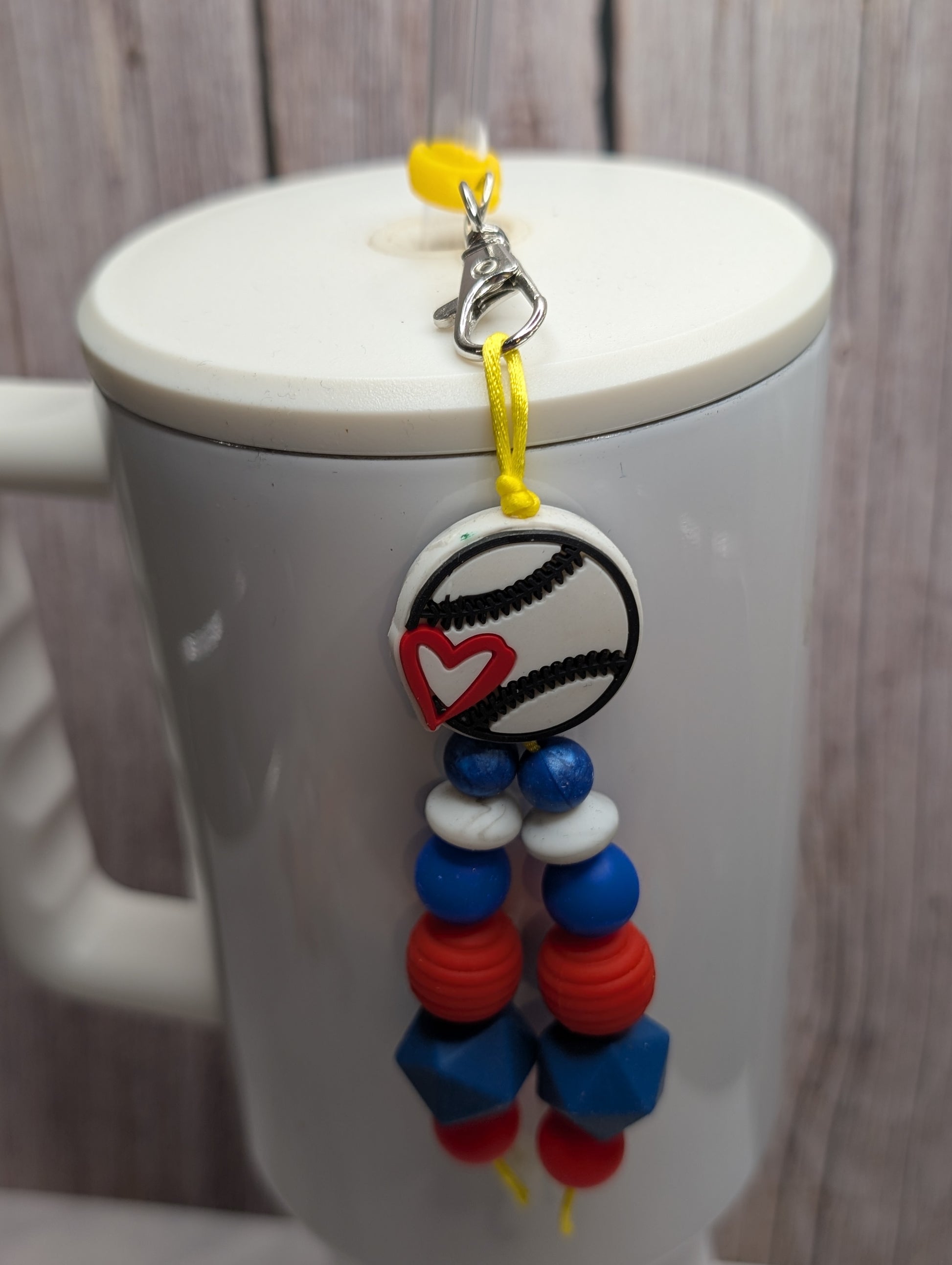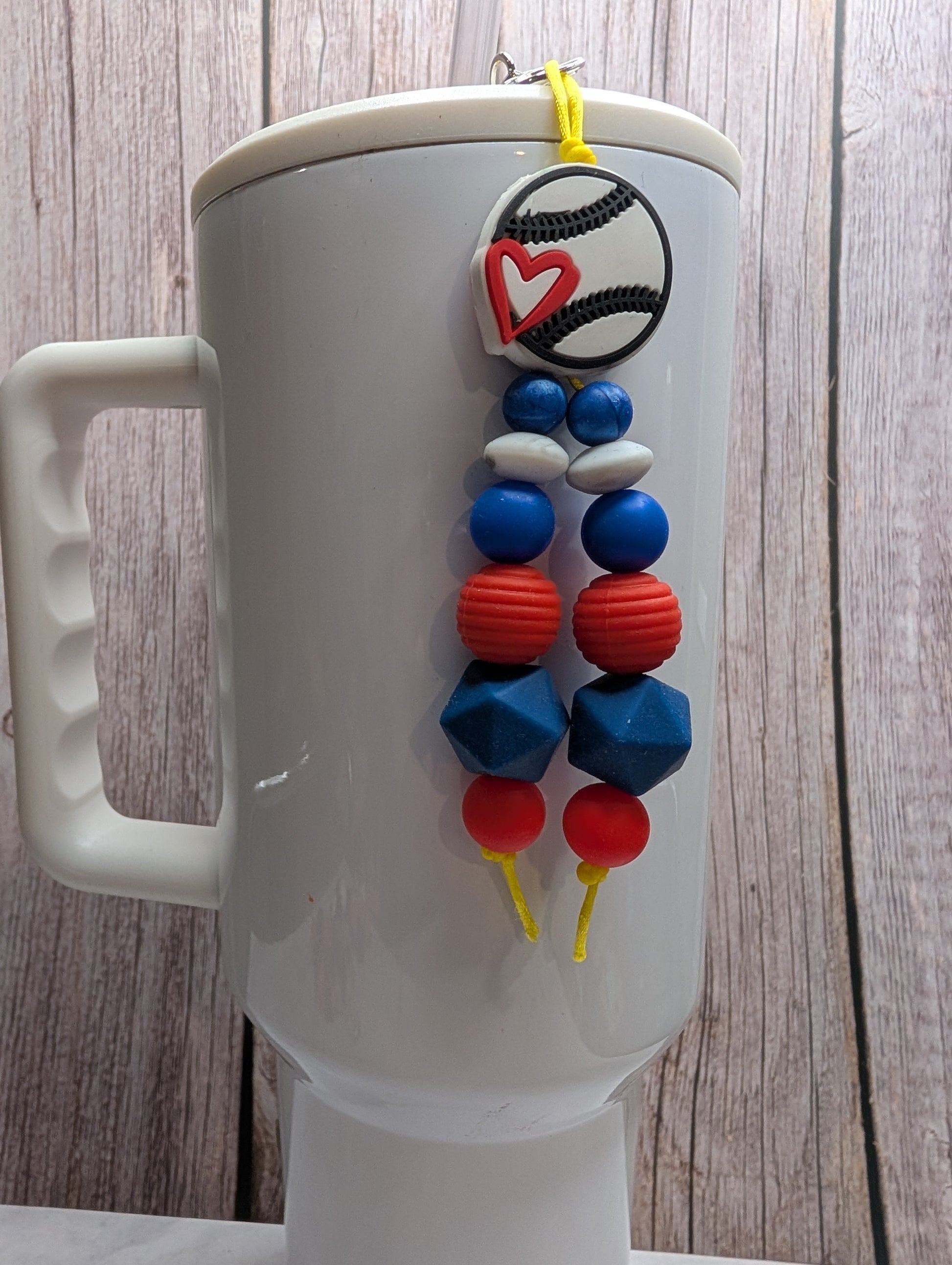 Made from food-grade silicone beads, this charm is tailored for baseball fans and fits small straws with ease. It measures approximately 5 inches in length.