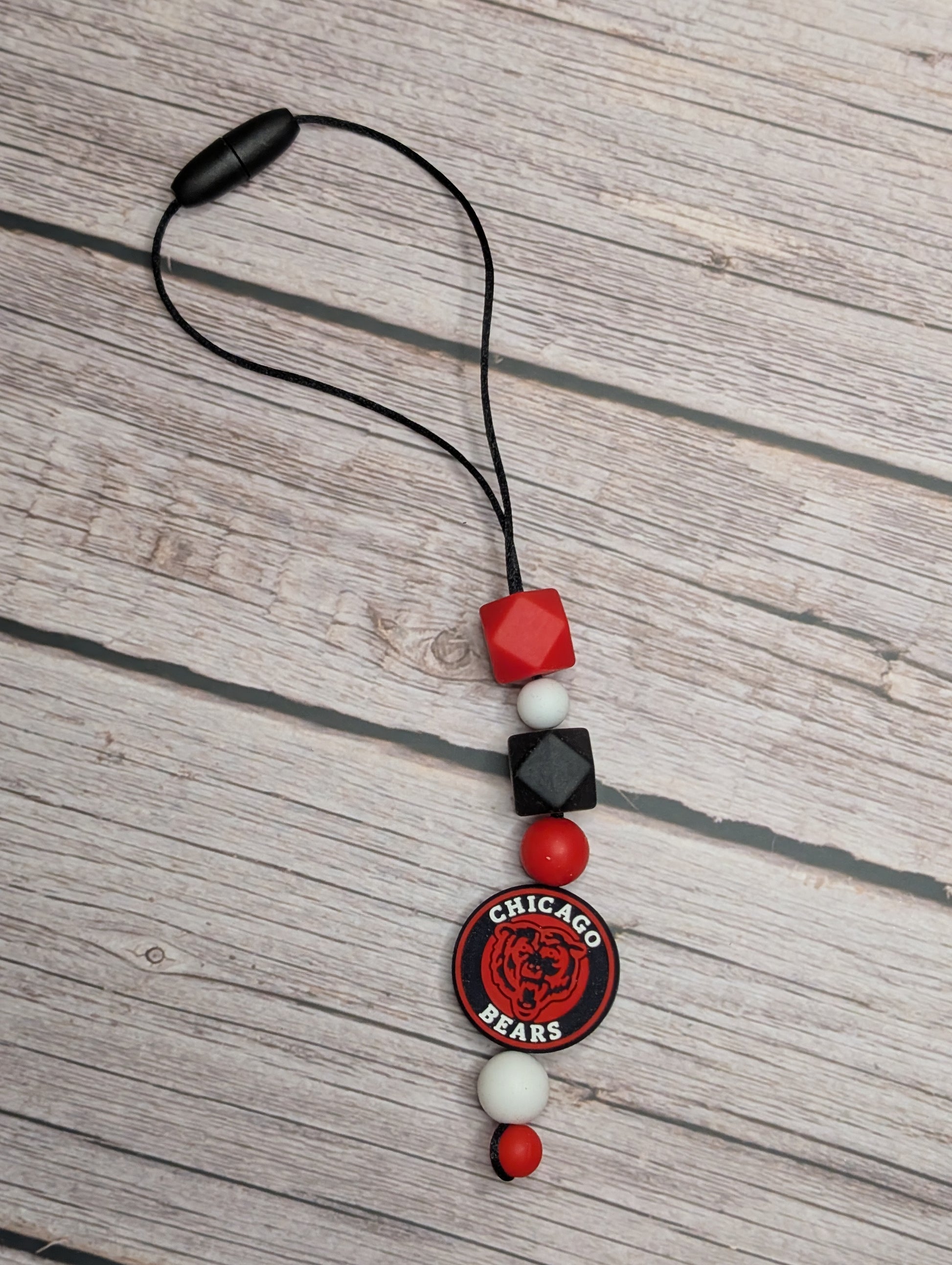 This pair features two unique food-grade silicone charms: a 3-inch charm crafted for your keys and an 8-inch charm intended to hang from your rearview mirror. Both display a Chicago Bears charm offering a blend of fashionable appeal and lasting strength.