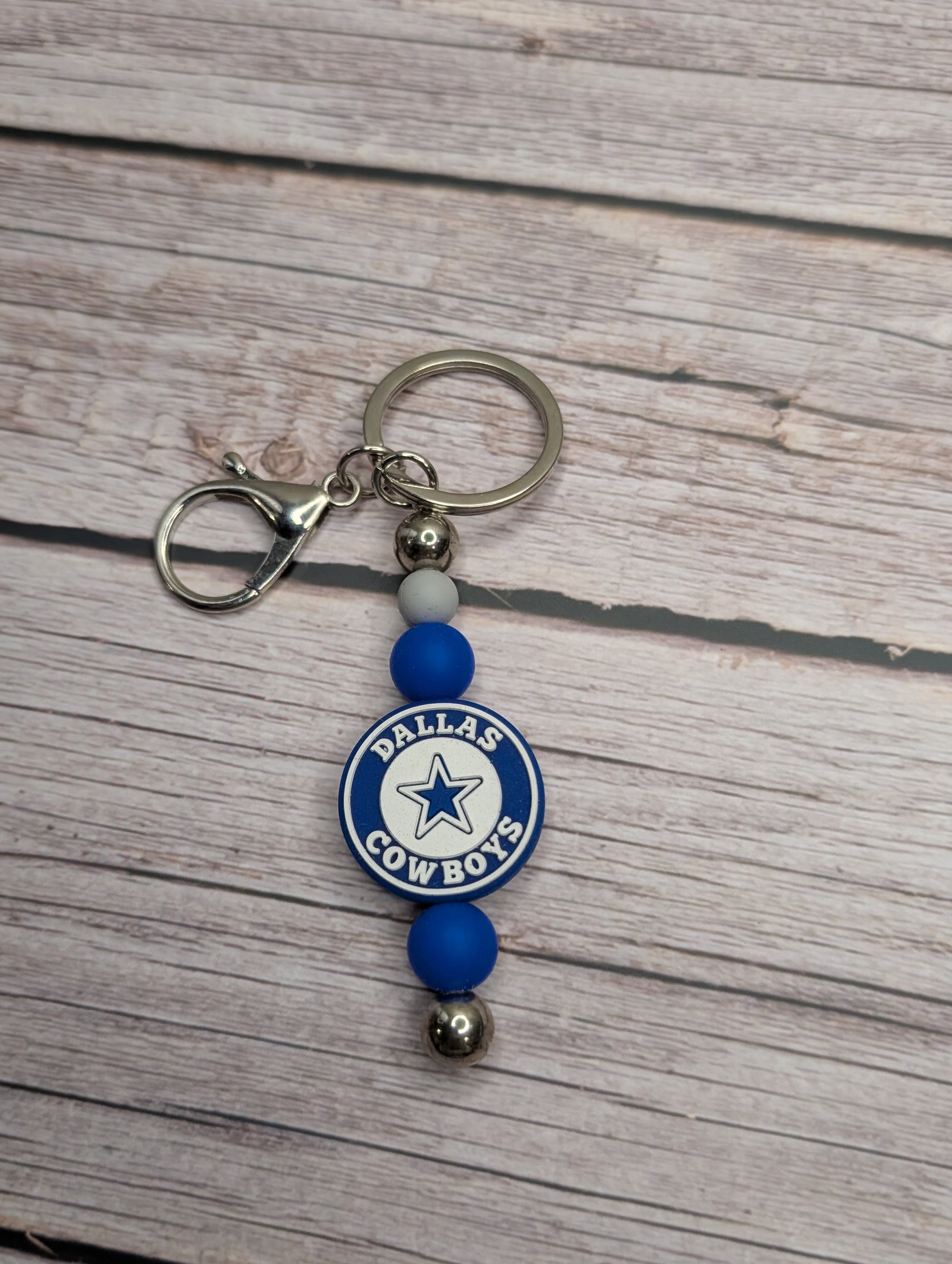 This key charm is made from food-grade silicone and features a Dallas Cowboys emblem.