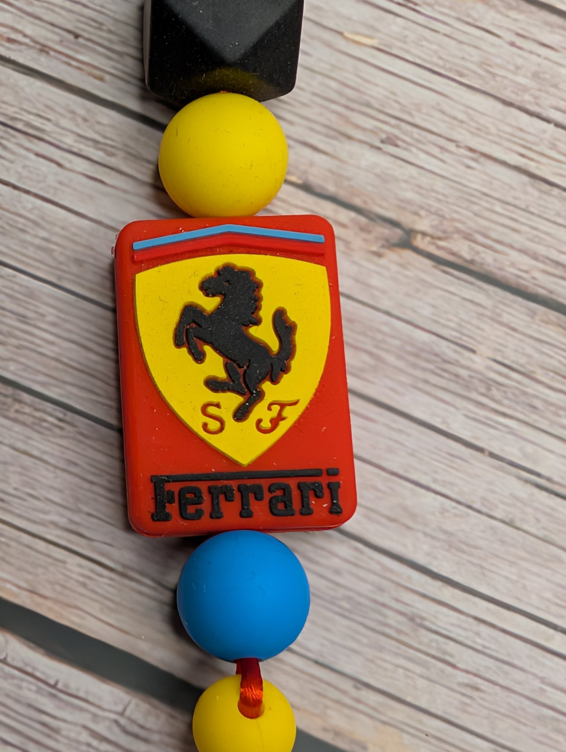 Designed to hang approximately 10 inches from your rearview mirror, this charm features food-grade silicone beads, including a distinctive Ferrari emblem. Its quality materials ensure durability while adding a refined touch to your vehicle’s interior.