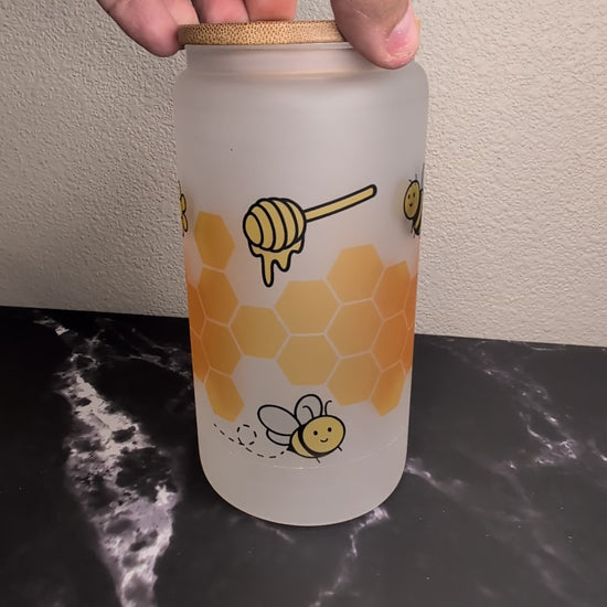 16 oz frosted libby glass with bamboo lid